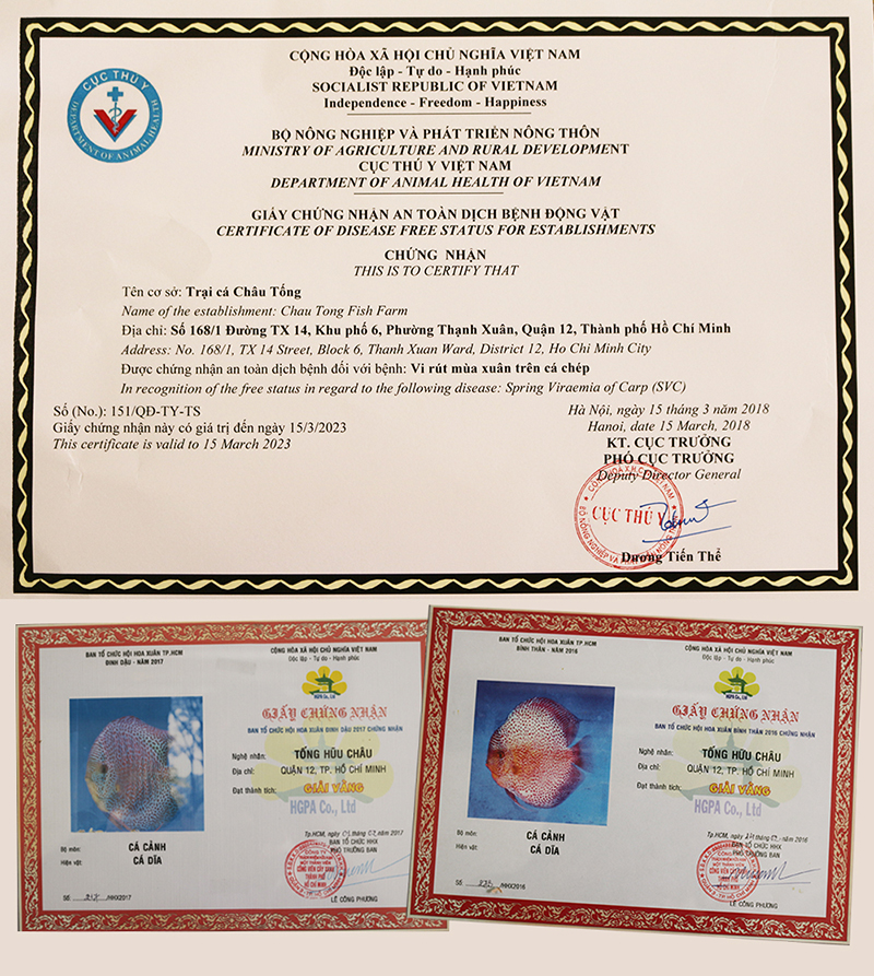 - In 2002: at the first Mekong Delta Machinery and Fishery, Agriculture Fair, Chau Tong Fish Farm was honored by the Ministry of Agriculture and Rural Development and Department of Agriculture and Forestry Encouragement as Farmers with Innovative Farming Practice.